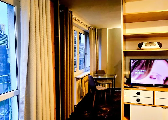 Eine komplette Küche mit einer Mikrowelle, einer Kaffee-/Teemaschine und Küchenutensilien ist hier ebenfalls vorhanden. Für einen bequemen und entspannenden Aufenthalt im Apartment stehen den Gästen Ausstattung zur Kaffee- & Teezubereitung zur Verfügung. Das Restaurant Hummus Love bietet Gerichte der mediterranen Küche und liegt circa 7 Minuten von der Unterkunft entfernt. Die U-Bahn-Station Rondo ONZ liegt in unmittelbarer Nähe zu dieser Unterkunft.